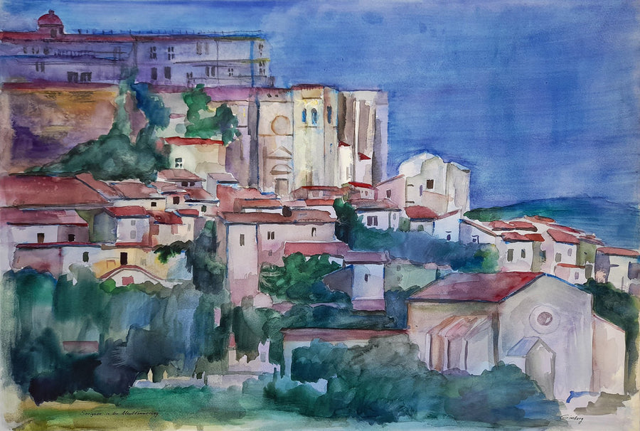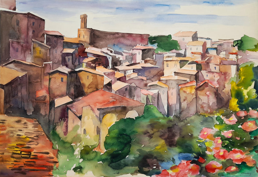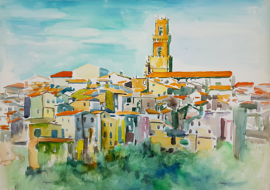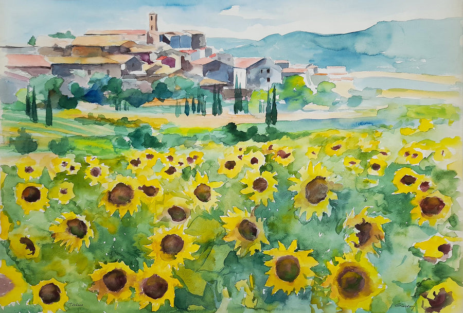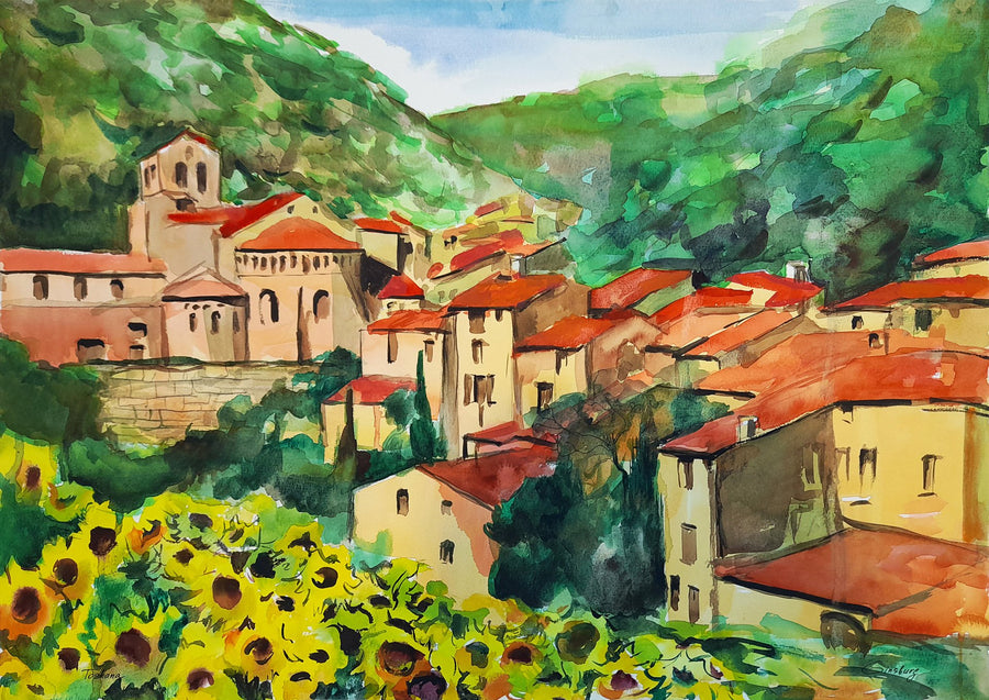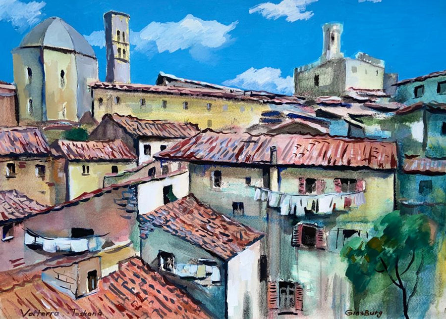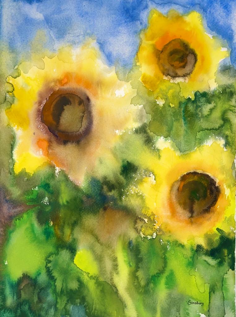 Die gemalten Landschaften werden als Topographie verstanden, dessen Aufbau besonderen Regeln folgt. In ländlicher Idylle, zwischen sonnendurchglühenden Hügeln, schattigen Landschaften und leeren Dörfern, fängt Ginsburg Momente ein, die ausdrucksstark sind.