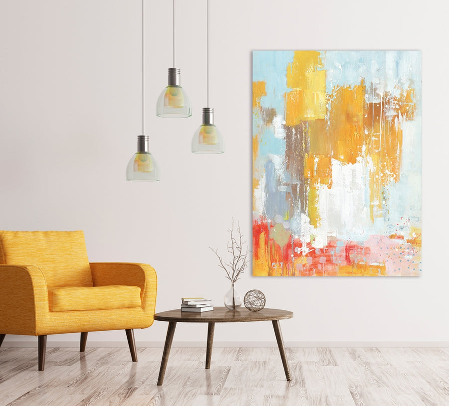 Dieses moderne und exklusive Leinwandbild ist ein Blickfang für jeden Wohnraum, jedes Büro und jede Lounge. Die hochwertige Leinwand ist auf einen Echtholzrahmen gespannt. Das Bild basiert auf einem Giclée / Digitaldruck, der von gut ausgebildeten Künstlern aufwendig von Hand bearbeitet und veredelt wird.