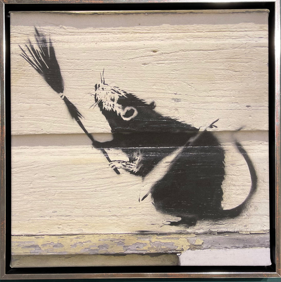 "Dieser beeindruckende Leinwanddruck des berühmten Straßenkünstlers Banksy zeigt das eindringliche Motiv "Cleaning Rat". Mit einer Außenmaßgröße von 38 x 38 cm und einem Bildmaß von 33.5 x 33.5 cm ist dieser Druck eine perfekte Ergänzung für jede Wand. Lassen Sie sich von der Street Art inspirieren und geben Sie Ihrem Zuhause einen einzigartigen Touch.