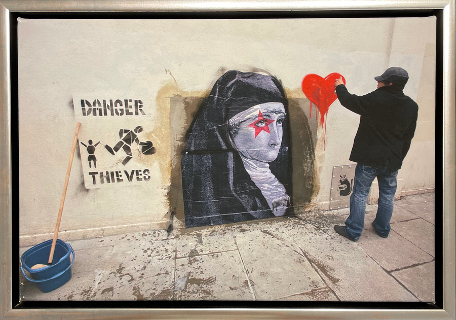 "Dieser beeindruckende Leinwanddruck des berühmten Straßenkünstlers Banksy zeigt das eindringliche Motiv "Danger Thieves". Mit einer Außenmaßgröße von 48 x 34 cm und einem Bildmaß von 44 x 30 cm ist dieser Druck eine perfekte Ergänzung für jede Wand. Lassen Sie sich von der Street Art inspirieren und geben Sie Ihrem Zuhause einen einzigartigen Touch."