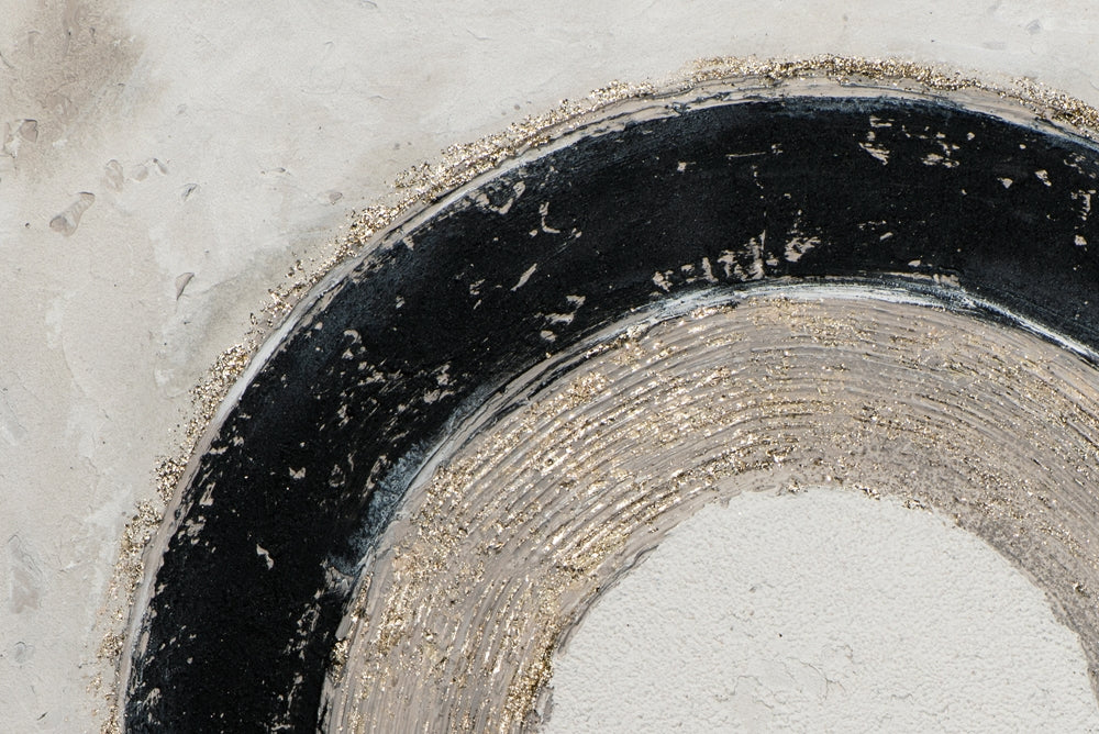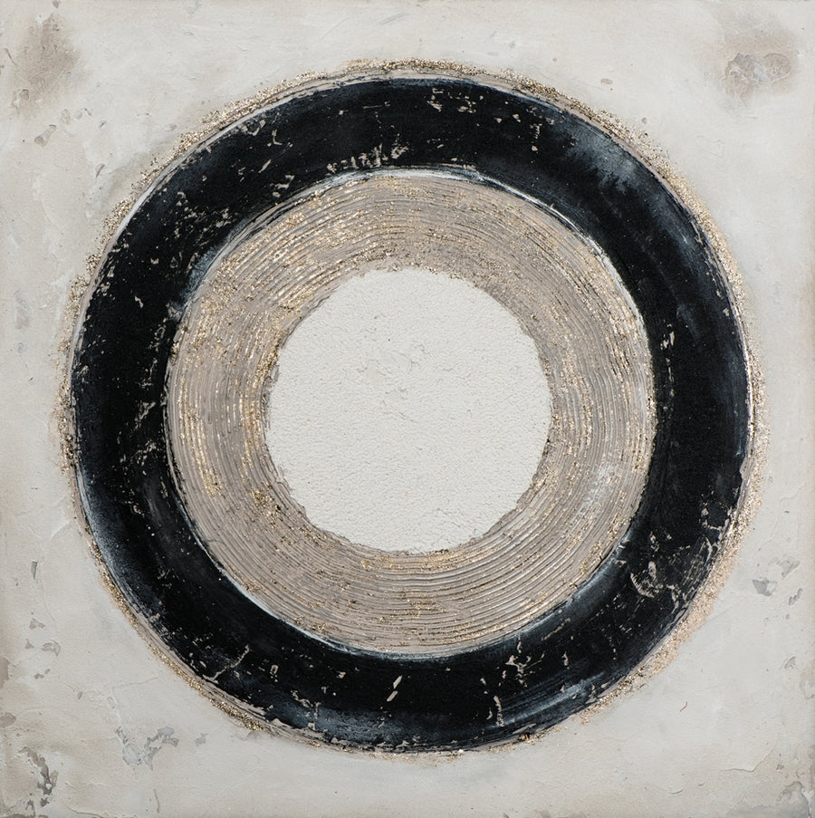 Wirkungsvoller eleganter Minimalismus! Kunstvoll handgefertigt stilsicher setzt das Schwarz die silbernen Passagen edel in Szene. Akzentuiert aufgebrachte silberfarbige Metallfolie verzaubert mit tollen Lichtreflexen. Gekonnt angewandte Craquelé Technik rundet unser Kunstwerk perfekt ab. Effektvolle Kunst für jede Wand!