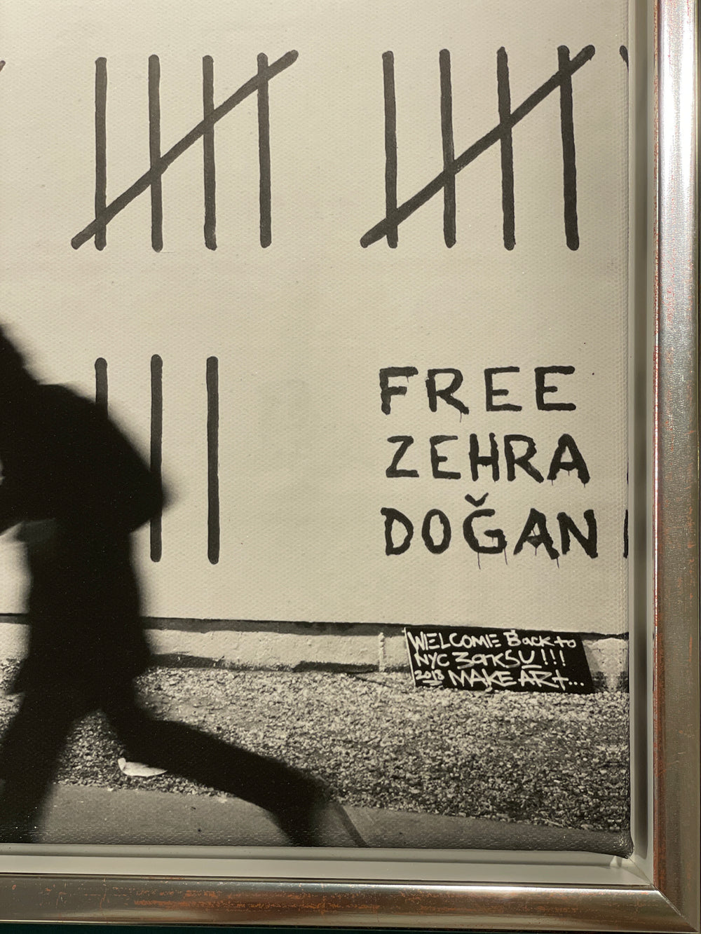 "Dieser beeindruckende Leinwanddruck des berühmten Straßenkünstlers Banksy zeigt das eindringliche Motiv "Free Zehra Doğan". Mit einer Außenmaßgröße von 89 x 35 cm und einem Bildmaß von 85 x 31 cm ist dieser Druck eine perfekte Ergänzung für jede Wand. Lassen Sie sich von der Street Art inspirieren und geben Sie Ihrem Zuhause einen einzigartigen Touch.