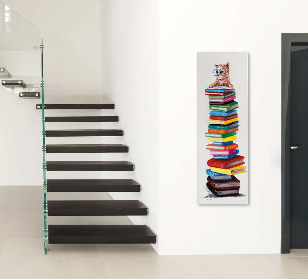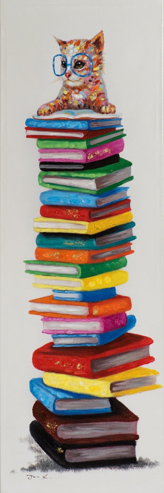 Katze auf einem Bücherstapel ist gewöhnlich in n Versandbereit