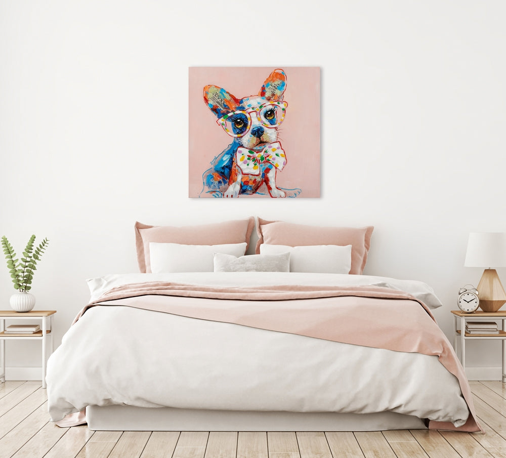 Lustiger Hund mit Brille ist gewöhnlich in n Versandbereit