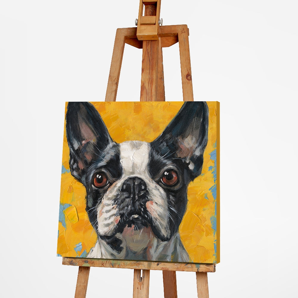 Die realistische Darstellung gepaart mit dynamischen Pinselstrichen verleiht dem Gemälde eine besondere Lebendigkeit. Der warme, strukturierte Hintergrund setzt das Motiv perfekt in Szene und sorgt für eine stilvolle Raumwirkung.