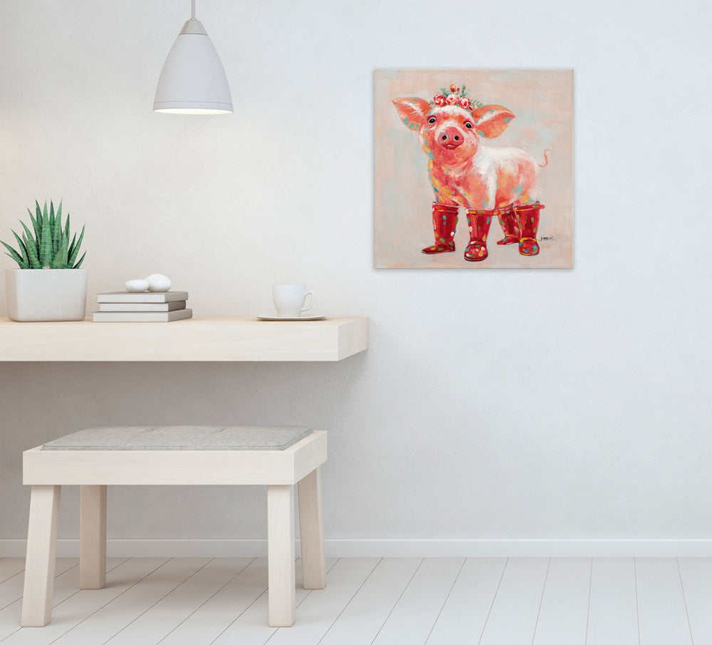 Gute Laune pur! Unser rosiges Schweinchen ist liebevoll von Hand fröhlich bunt coloriert. Diesem charmanten Blickfang kann man nicht widerstehen. Hochwertiges Giclée mit tollen Farbtupfern. Ein ausgelassen beschwingtes Highlight für Ihr Zuhause.