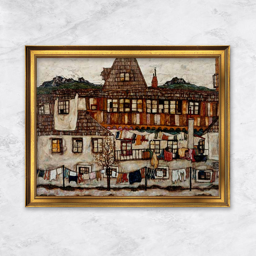 "Haus mit trocknender Wäsche" | Egon Schiele ist gewöhnlich in 14-25 Werktage (Ölgemälde 40-45 Werktage)n Versandbereit