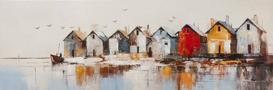 Bringen Sie den Charme der Küstenlandschaft in Ihr Zuhause mit diesem bezaubernden Gemälde. Die friedliche Szene, eingefangen in sanften Pastelltönen und durchsetzt mit einem kräftigen Rot, das das Auge magnetisch anzieht, vermittelt ein Gefühl von Ruhe und stiller Lebensfreude. Dieses Werk ist ideal für alle, die sich nach einer Auszeit vom hektischen Alltag sehnen und eine visuelle Zuflucht in der Schönheit der Natur finden möchten. Es passt perfekt in jede Wohn- oder Arbeitsumgebung und verleiht jedem Raum einen Hauch von Gelassenheit und Inspiration.