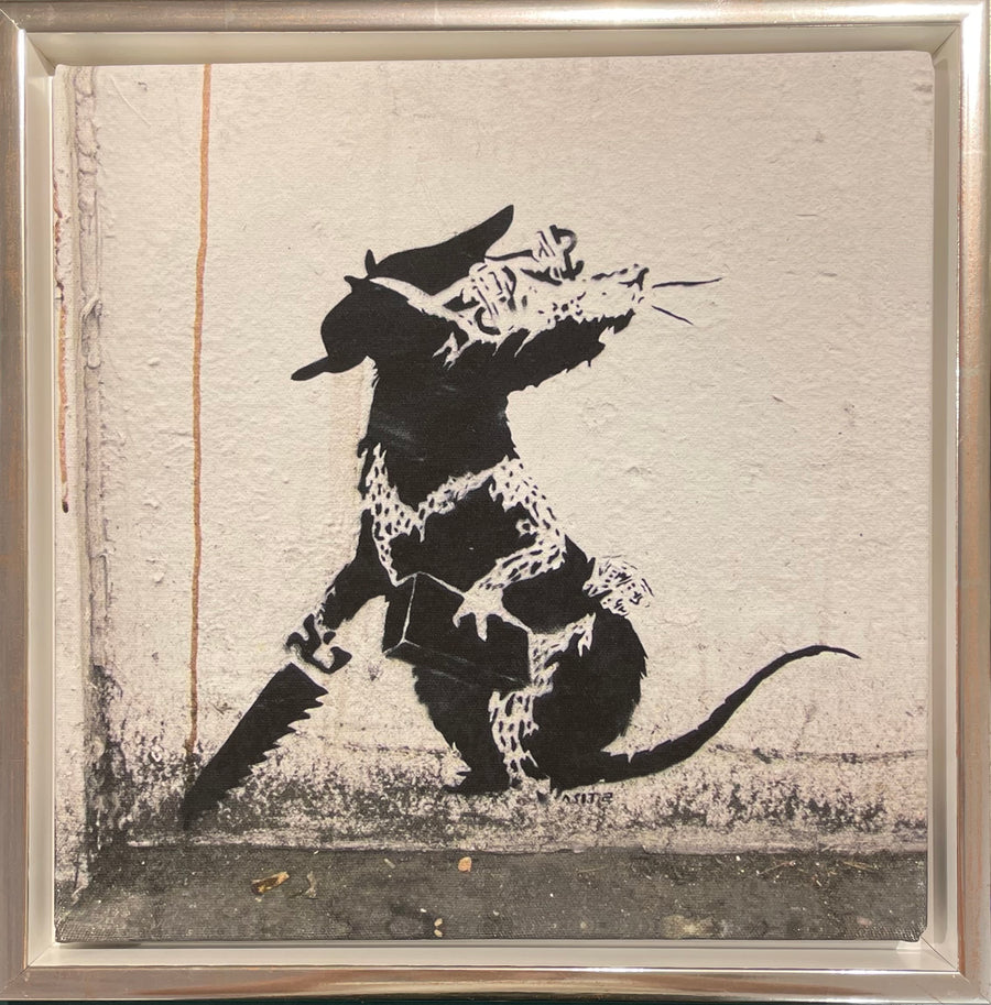 "Dieser beeindruckende Leinwanddruck des berühmten Straßenkünstlers Banksy zeigt das eindringliche Motiv "Money Rat". Mit einer Außenmaßgröße von 38 x 38 cm und einem Bildmaß von 33.5 x 33.5 cm ist dieser Druck eine perfekte Ergänzung für jede Wand. Lassen Sie sich von der Street Art inspirieren und geben Sie Ihrem Zuhause einen einzigartigen Touch.