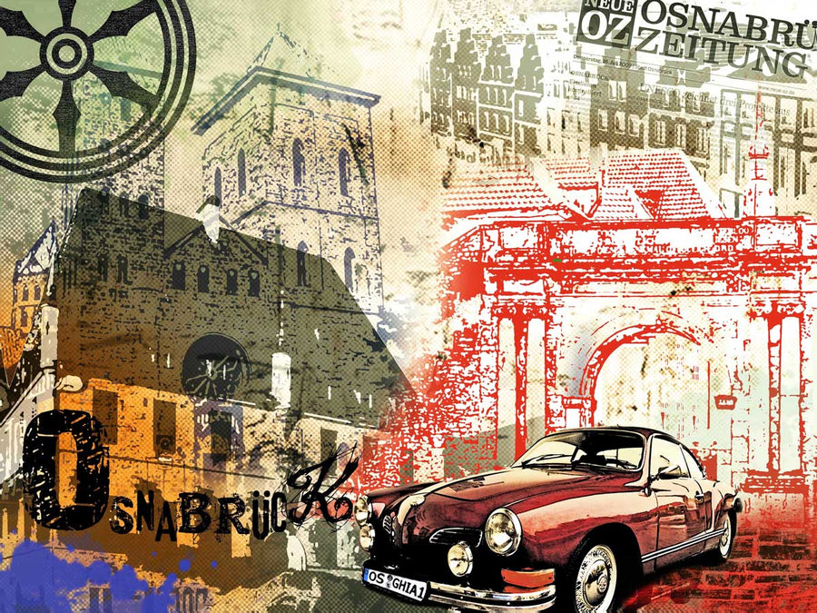 Osnabrück Collage Karmann Ghia | Giclee auf Holzkeilrahmen