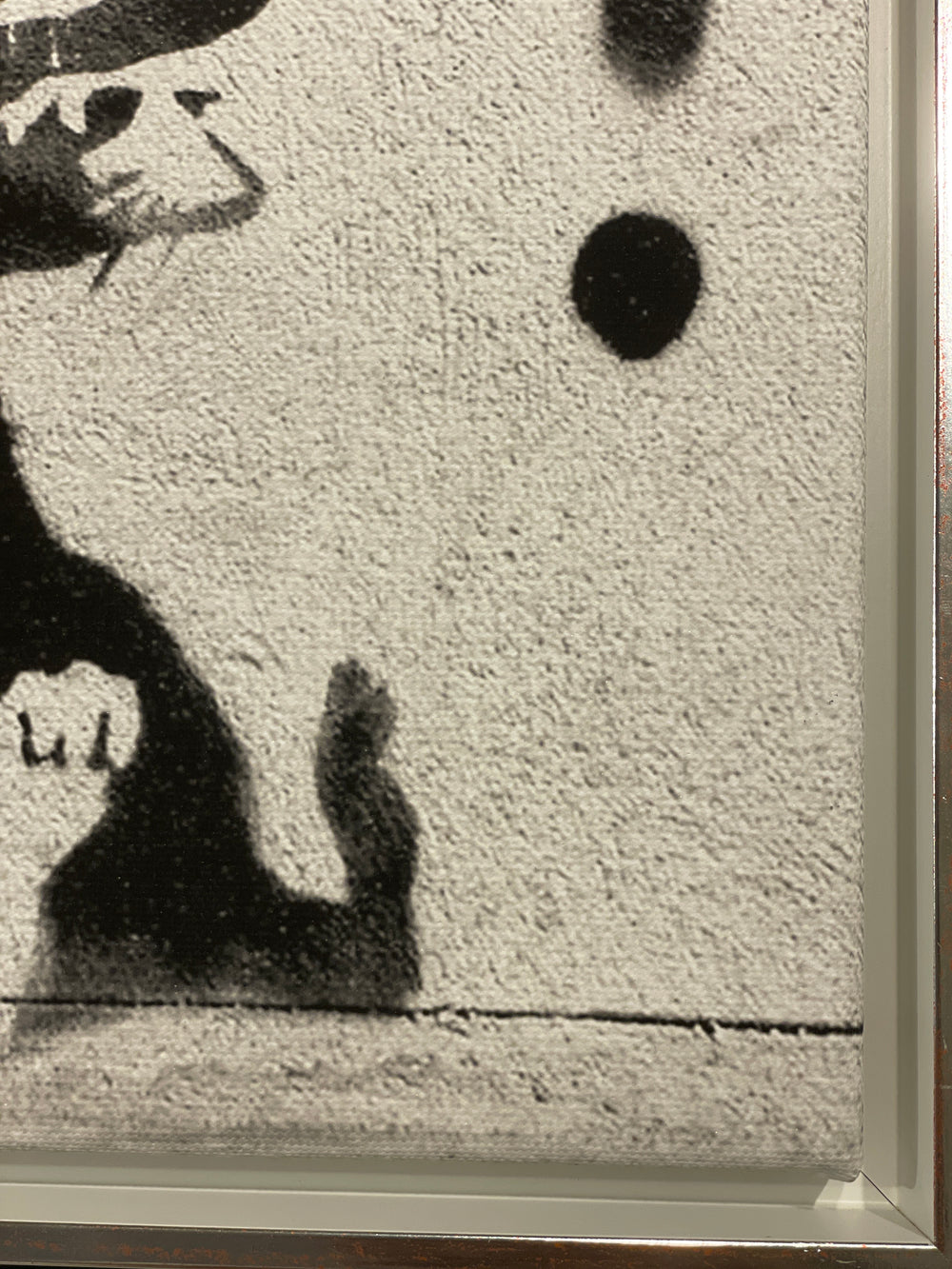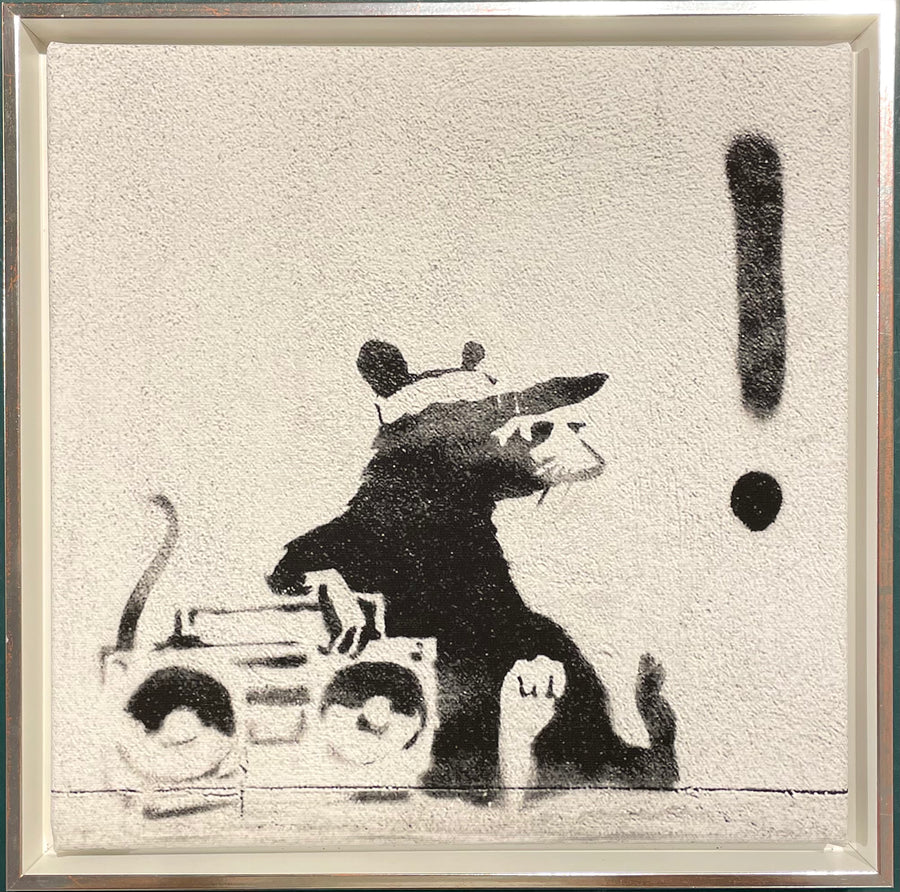 "Dieser beeindruckende Leinwanddruck des berühmten Straßenkünstlers Banksy zeigt das eindringliche Motiv "Rat With Ghettoblaster". Mit einer Außenmaßgröße von 38 x 38 cm und einem Bildmaß von 33.5 x 33.5 cm ist dieser Druck eine perfekte Ergänzung für jede Wand. Lassen Sie sich von der Street Art inspirieren und geben Sie Ihrem Zuhause einen einzigartigen Touch.