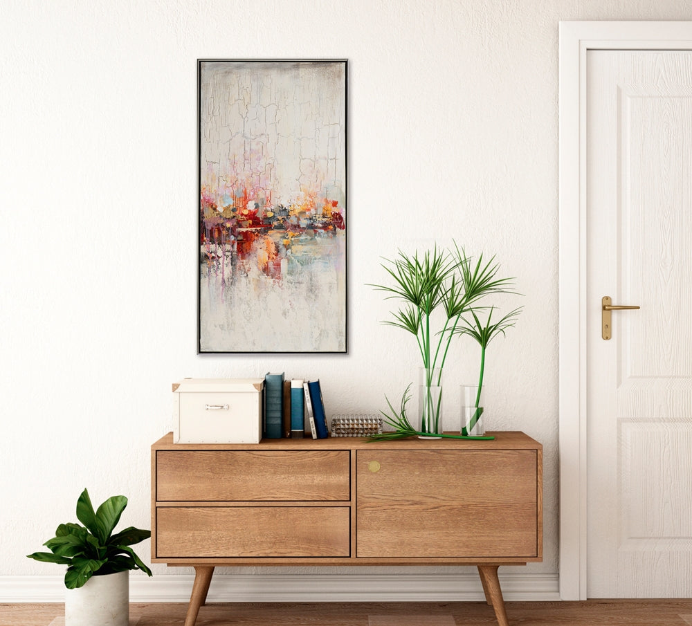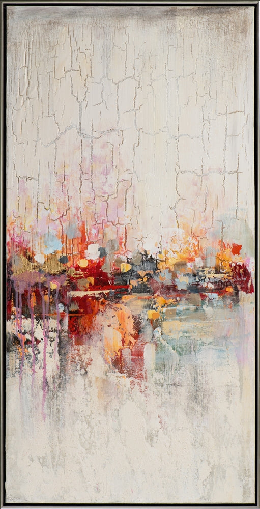Harmonisches abstraktes Farbenspiel lässt Raum für freie Interpretationen. Aufwendige Craquelé Struktur und Akzente aus schimmernder Metallfolie machen unser handgemaltes Acryl Gemälde zum Kunstobjekt. Im passenden silberfarbigen Schattenfugenrahmen eine stimmungsvolle Dekoration für Heim und Büro.