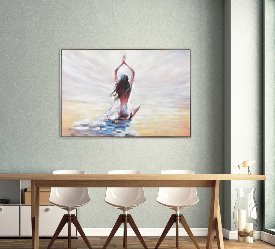 Dieses moderne und exklusive Leinwandbild ist ein Blickfang für jeden Wohnraum, jedes Büro und jede Lounge. Die hochwertige Leinwand ist auf einen Echtholzrahmen gespannt. Das Gemälde wird von gut ausgebildeten Künstlern in brillanten, hochwertigen Farben von Hand gemalt.Bei jedem handgemalten Bild ergeben sich kleine Abweichungen in Farbe und Form, die den Unikatcharakter ausmachen. Unsere Kunden schätzen diese Individualität und die Qualität unserer Bilder. Zur einfachen Montage werden flexibel einsetzbare Aufhänger mitgeliefert.