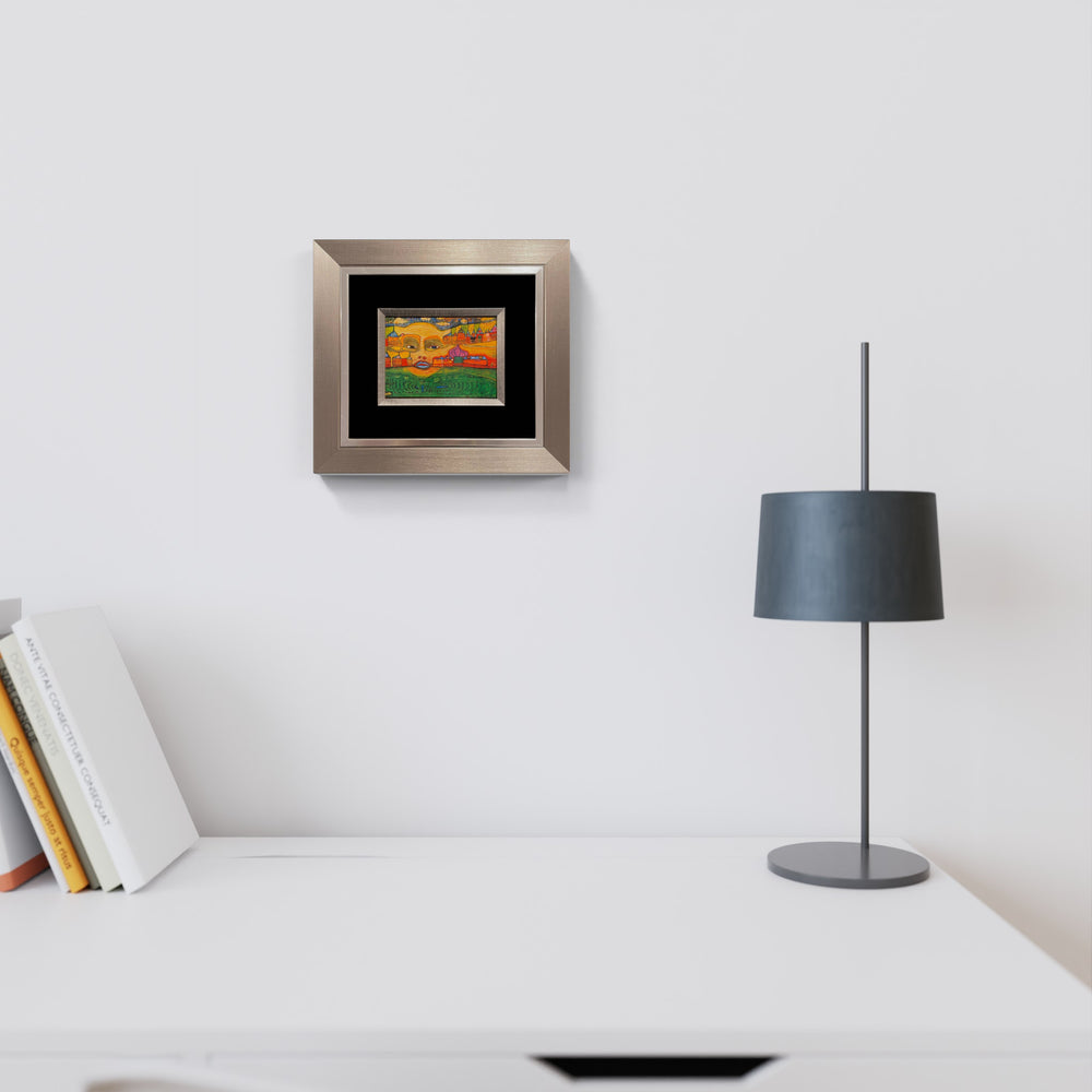 "Irinaland über dem Balkan" | Friedensreich Hundertwasser Miniprint mit Rahmen