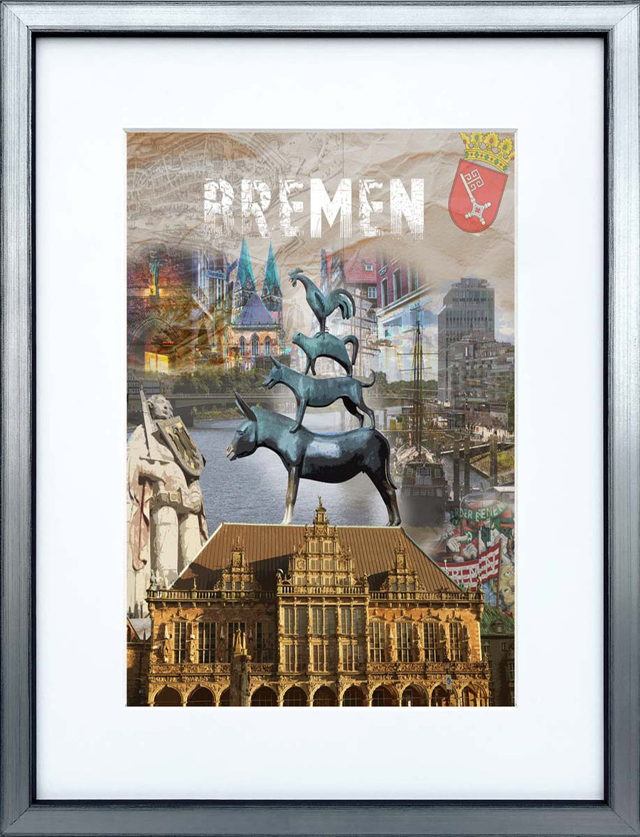 Vintage Bremen | Stadtcollagen Miniprints ist gewöhnlich in 1 - 5 Werktagen Versandbereit
