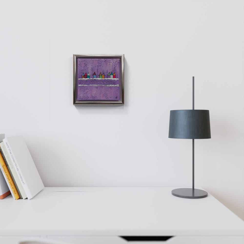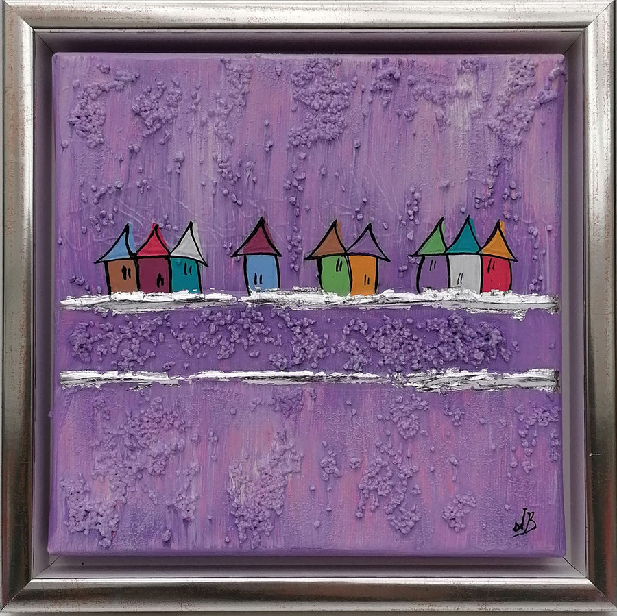 Dieses Werk zeigt farbenfrohe Häuser inmitten einer leuchtenden Berglandschaft. Wie alle Bilder von Lea Bach hat diese Acrylmalerei viel Struktur, durch die verwendete Spachteltechnik erweckt es den Eindruck von Tiefe und zieht den Betrachter in seinen Bann.