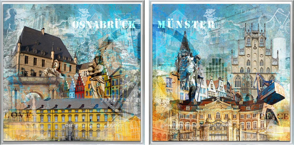 Osnabrück und Münster-Friedensbild Collage 2023 (Set) ist gewöhnlich in 5 - 14 Werktagen Versandbereit