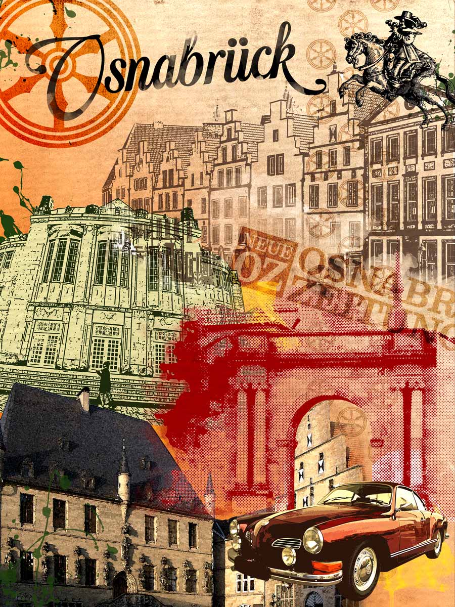 Vintage Karmann Ghia Osnabrück Collage ist gewöhnlich in 5 - 14 Werktagen Versandbereit