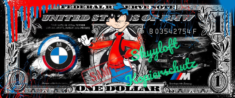 In den Werken von Skyyloft verschmelzen Elemente der modernen Zeit, wie Champagner, Partys und Dollarzeichen, mit einer nostalgischen Hommage an seine Kindheit, geprägt von Comichelden wie Dagobert Duck, Mickey Mouse und Bugs Bunny. Diese dualistische Herangehensweise spiegelt sich in jedem seiner Kunstwerke wider.