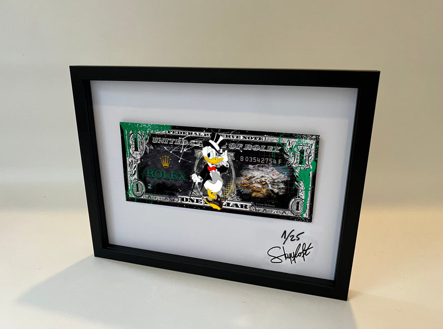 Alle weißen Teile des Dollars sind in Chromoptik gestaltet. Dadurch spiegeln sich diese im Licht und verleihen dem Kunstwerk das gewisse Extra.