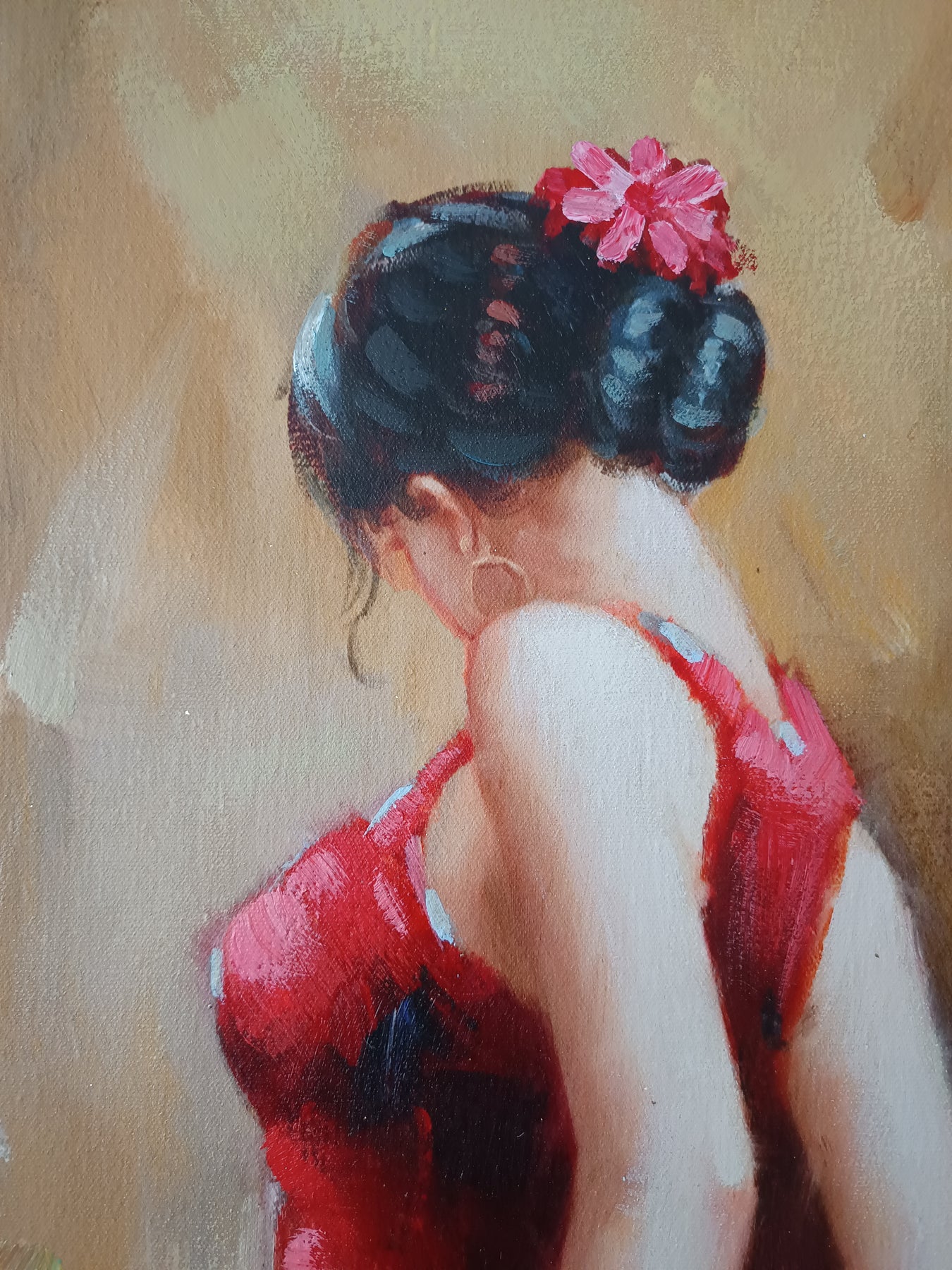 Dame in rotem Ballkleid ist gewöhnlich in n Versandbereit