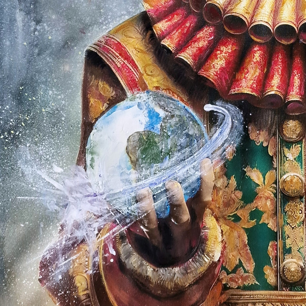 „Smile for the World“ von Lothar Nordmann ist ein Acrylbild auf Leinwand, das durch die zentrale Darstellung eines Gaukler eine einzigartige Atmosphäre schafft. Die kunstvolle Farbgestaltung verleiht dem Werk eine bezaubernde Ausstrahlung, die vielschichtige Geschichten und Gefühle vermittelt. Dieses Bild vereint künstlerische Finesse mit lebendiger Bewegung und setzt in jedem Raum einen eleganten Akzent.